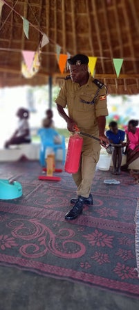 This month, we invited the Police department which helps when there is a fire, to come to Amecet to train the staff in fire prevention and what to do in case...... We have several fire extinguishers in our homes, they were due for refill, so we could use them to empty, during the training.