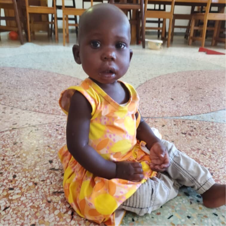 Deborah was brought to Amecet on 2/9/'22. She was brought by her uncle and a staff of a healthcare centre in the village. Again a sad story, Deborah's mother is HIV+ and she has a mental problem. Nobody knows who is the father of Deborah. The uncle, (he is a cousin of her mother) tries to care for the mother and also for Deborah. Deborah is 15 months old, she can't walk, not even stand by her self. She is malnourished (her weight is 6.2 kg.) she is weak and she is aneamic. She is a sad little girl, very quiet, she doesn't cry and she doesn't laugh... she is just there..... It took a lot of work to get a smile from her, she is really a child that touches your heart.