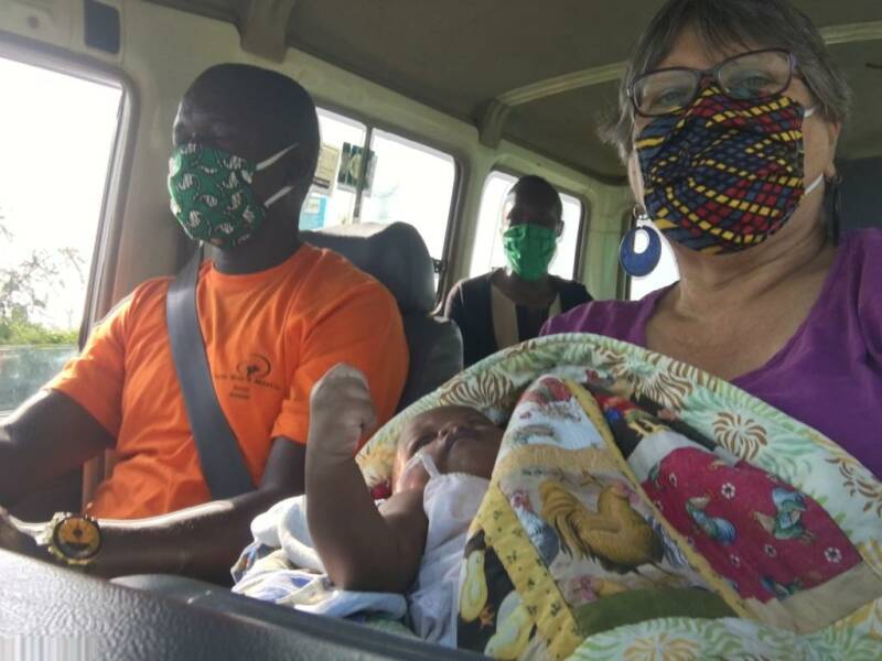 The last baby we brought home was baby Rose. She was only some hours old when they brought her to Amecet. The mother was very young, only 17 years old, Rose was her first baby. She died in the hospital after a caesarean. Rose stayed almost 3 months with us. The grandmother is going to care for her And Rose really smiled to her when we laid her in her arms.