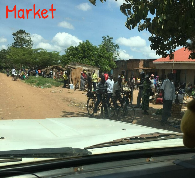 We drove back and arrived at around 2 pm in Amecet. During the 4,5 hours driving in the villages, we only saw 1 car (parked). For the rest only bicycles, motorcycles and many people just walking... with bags or baskets on their head, with children, sometimes with a goat on a robe. Life is not much changed by Corona in the village. People sit together, walk together, if nothing has changed.... We didn't see face masks, which is mandatory in Uganda. Simon, Robinah and I were wearing face masks, I felt a bit funny about it (but we did keep them on), we were the only ones... There was even a market, like normal, people gathered together if there was no Corona on earth. It felt a bit double, good to see that there is still "normal" life, but at the other side, there is the reality of Corona and I pray it will never reach the villages...…..