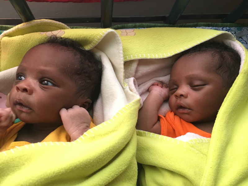 Beginning of August, James and Samuel were brought to Amecet. They are twins as well, but they are 3 months old. They are not sick and not really malnourished, but they were brought for safety. Their mother has a mental sickness and their life was in danger. The mother had more twins in the past, they all died. There is an old uncle who tried to help, but he couldn't care for them anymore and the authorities were fearing for the life of the two boys.