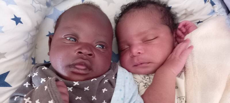 On Tuesday, the Police brought baby Moses (at the right) to Amecet, we think he was only 3 days old. A beautiful baby boy, the umbilical cord was still there. And on Friday we got a call from the Police if we could come and pick an abandoned baby, he was found the evening before... We think that he is around 1 month old, we gave him the name Tom..