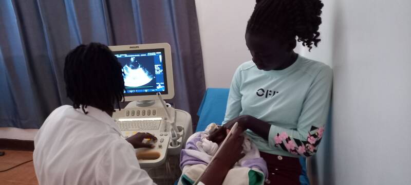 Of course, she doesn't smile on a picture, but really, she smiled to me... I am writing about Faith Adongo, part of the twins who was brought to Amecet in November. On the picture you can see her sister, Apio Grace, behind her in the little bed, she is still on oxygen and we feed her by NG tube. In the blog of November 23, you can read their story, how they came to us. Since that time we have been struggling with them, especially with Grace, the smallest one. Grace was only 1.2 kg in weight when she came, today her weight is 2.6 kg, so we see improvement there. Faith was 2.1 kg when she came and today her weight is 3,5 kg. Faith is doing quite well, but Grace is not doing so good, she is again on oxygen, now for already 3 weeks. We took them to the doctor, because several times they crashed. Grace even 3 times and Faith once. The doctor referred us for a heart scan, first with Grace and the scan showed 3 holes in her heart, 2 of them might still close, but one of them was a question. We took also Faith for a scan, as the identical twin sister, she had also 2 holes in her heart, but they might close by themselves.