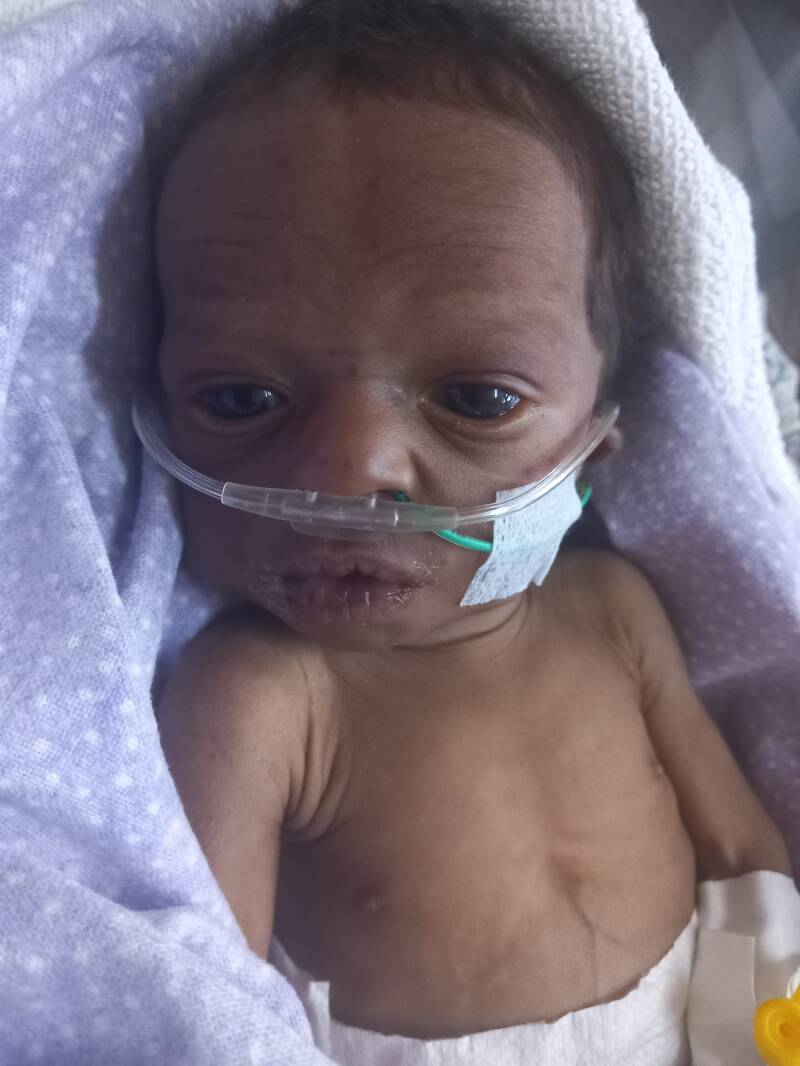 The next day the doctor came to check her and the baby went on IV fluids, anti biotics and we stopped the oral feeding, because the tummy was swelling. The baby was very sick. Our medical team was with her around the clock.