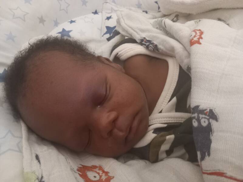 The next day, Samuel was brought to Amecet. He was 3 weeks old and this is also a sad story; The mother gave birth while she was in her last phase of having breast cancer. She died in the hospital, when the baby was 3 weeks old. He was her 8th baby. The baby was small, only 2.1 kg, his weight had been 2.6 when he was born. He lost weight and was not able to gain it back in those 3 weeks, By now he is drinking good and he has gained. I think that all the attention went to the dying mother and the baby was lacking nutrients.