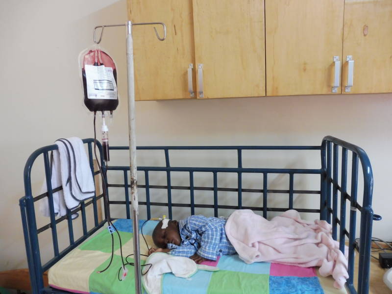 Yesterday Paul was brought, a little boy of 2 years, he was brought by his mother (who is mentally retarded) and a community worker. Paul is severe malnourished, swollen feet and hands, looks very pale. After taken him to the doctor and several tests, he had to go on I.V injections and needed blood transfusion.