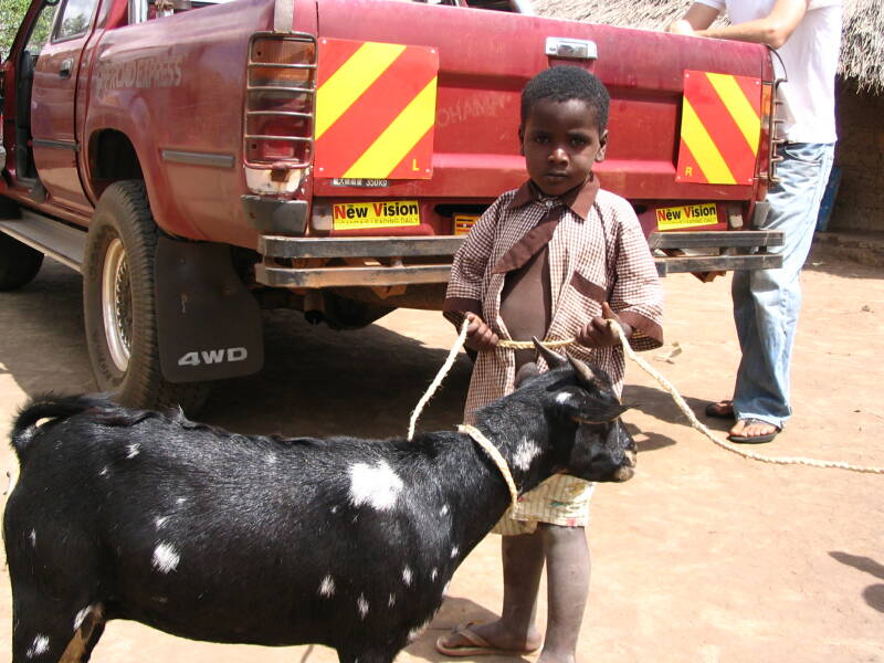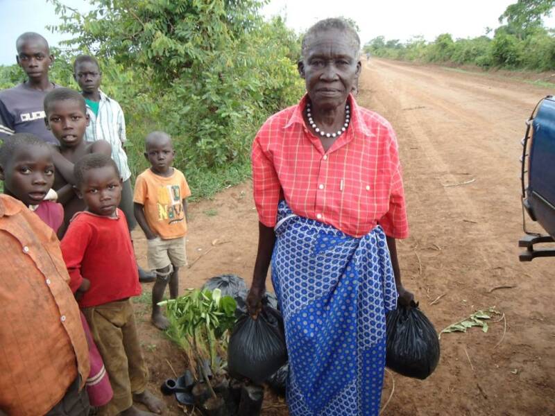 When I started Amecet, I still continued with this Grandma project, but when I got help from Simon and Elias (our social workers), we changed it in more practical help. We gave seeds, cassava cuttings and groundnuts to plant in their gardens and the crops would help the family to eat. When we got special gifts, we gave one time a goat, another year we could give a cow, we gave orange trees and we even one year a bull with a plough. It was such a good way to support those brave women and it helped the families a lot! We target the HIV+ children who had been with us in Amecet and were now cared for by their grandma's, and some very needy families.