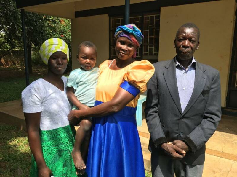 Francis (the small child in this picture) has left a week ago to his new family!! He has been in Amecet twice, the first time in 2019 and that time he was malnourished and miserable. Together with the Police he was re-settled back to his father in the village. We kept in touch with him via the local police in his village. Some months ago we got a call from the police that it went wrong with Francis. His father had beaten him so bad that his leg was probably broken. The father was gone and his new wife looked after Francis. The biologic mother of Francis is nowhere to be found. Simon went to see how the situation was and he came back with Francis. We think he is around 3 years old. I took him to the doctor and X-rays were taken, his leg was broken, but it was already 3 weeks old. The leg healed well. The family clan was not willing to care for him and after more visits of our Social Worker, it was decided, together with the Probation Officer, that we should look for a foster family for Francis. It is not good for a child like him, to be long in a Children Home, we were so happy to hand him over to his new family. He is wanted, loved and cared for. Francis was also very happy and waved us goodbye when they walked together out of our compound!