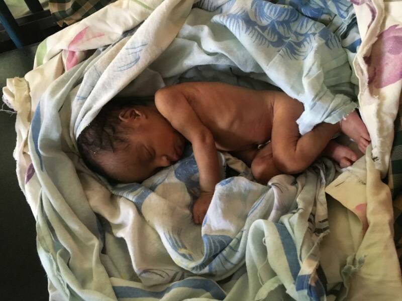 She was cold, and very skinny, we took the baby directly to the clinic next door and the baby was started on I.V.Medication and we worked very hard in warming her up.
