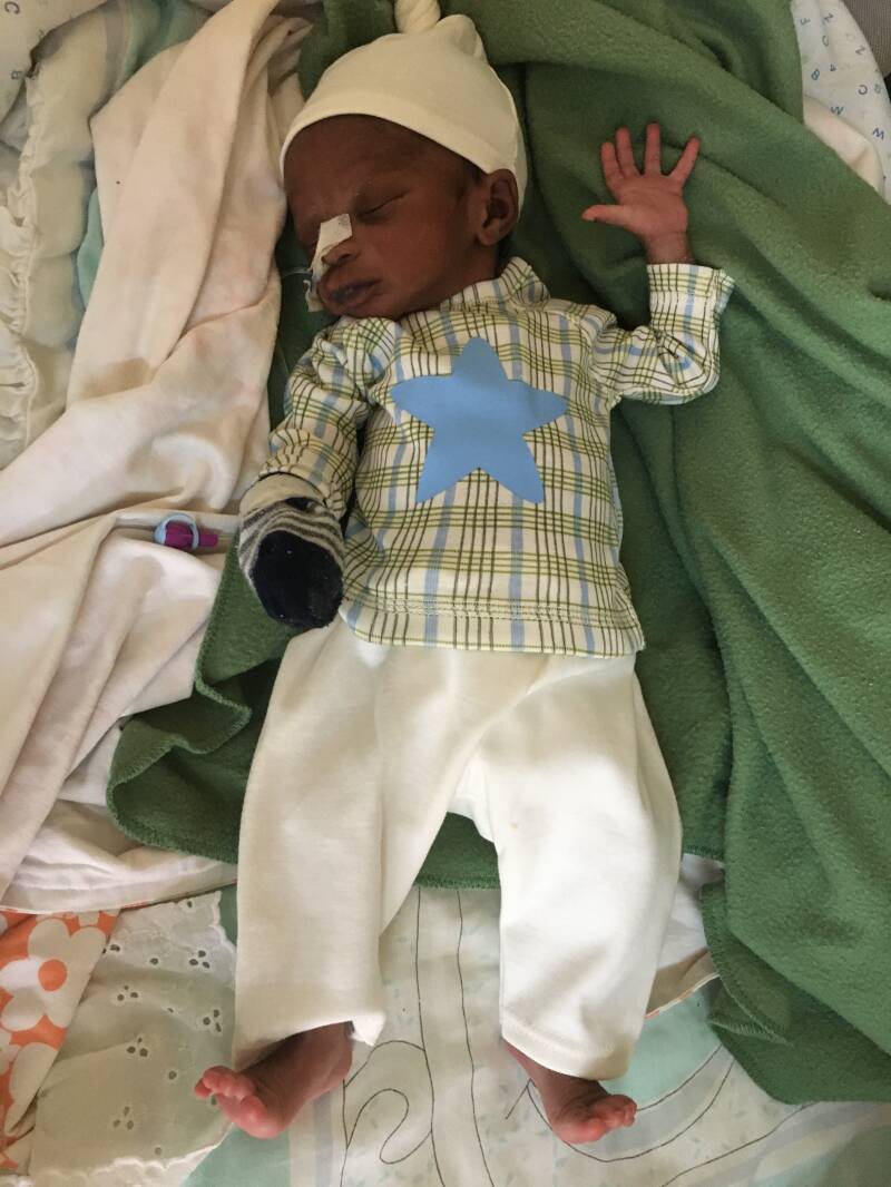 In the last blog, I wrote about baby James. He was quite sick and was on IV fluids and medication and on oxygen. I am very, very happy to tell you that he is doing much better. As you can see on the picture here. He is still not drinking well, so we use a NG tube and feed him through that. On this picture he is showing off his new suit... we got some awesome gifts, send from the Netherlands with very small baby clothes (size 40 and 42!) also the small size NG tube and a small vein viewer, which would help us to find the veins of very small baby's easier. We are so grateful to Trijinie and Klaaske, who blessed us so much.