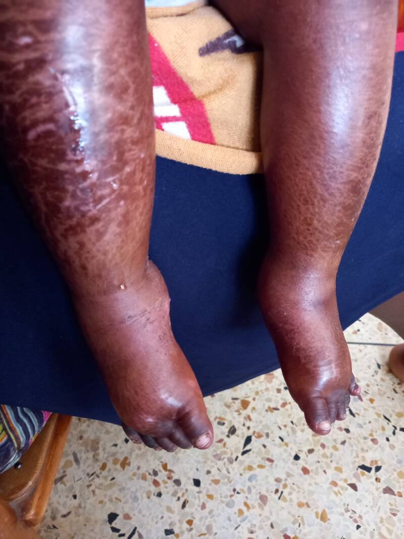 On this picture, you can see her legs, it is very painful and she is also very irritable. She was started on a rich protein diet and we started with small amounts, every two hours. Because she is not used to rich food, we have to be careful, so she can tolerate it.