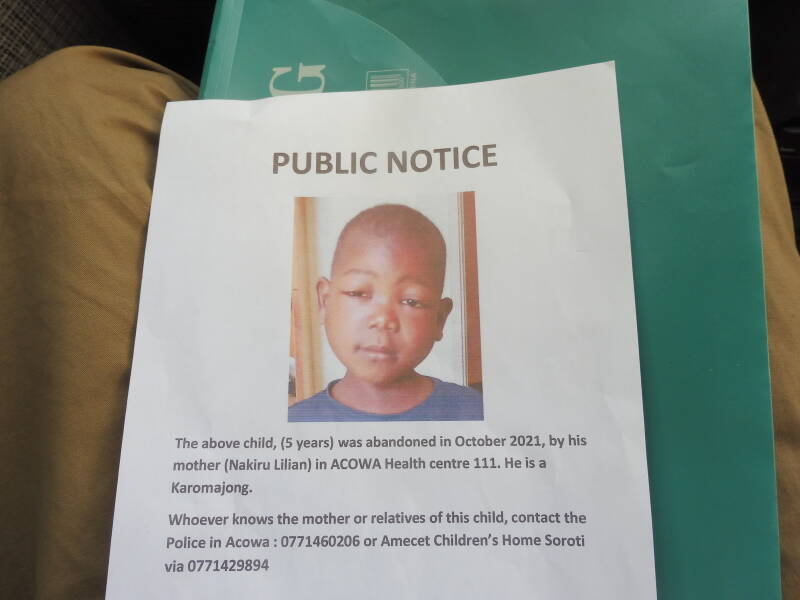 In the previous blog, I also wrote about 2 other children, one was Rogers. We also did the Posters for him and the announcement in the newspaper as well. We also found Rogers' mother. Our Social worker went to look in the village and when he showed the picture from him, people showed him where she was. The mother was not really to blame, it was a whole complot of lies around them. She is very happy and wants him to come back to her. But Rogers is still on medication for his kidney problem and is doing so much better. When he is finishing his medication , we will bring him back to his mother!